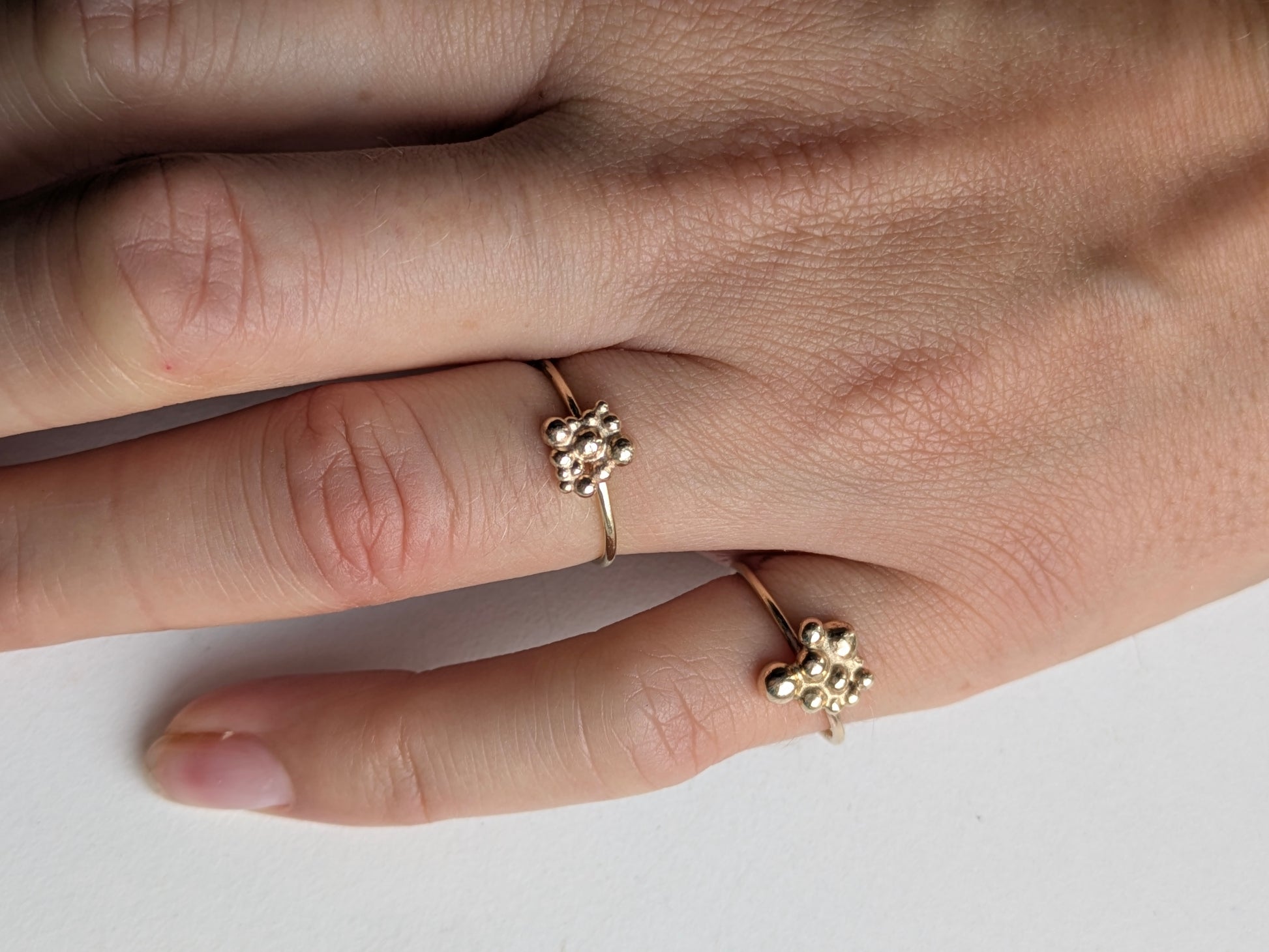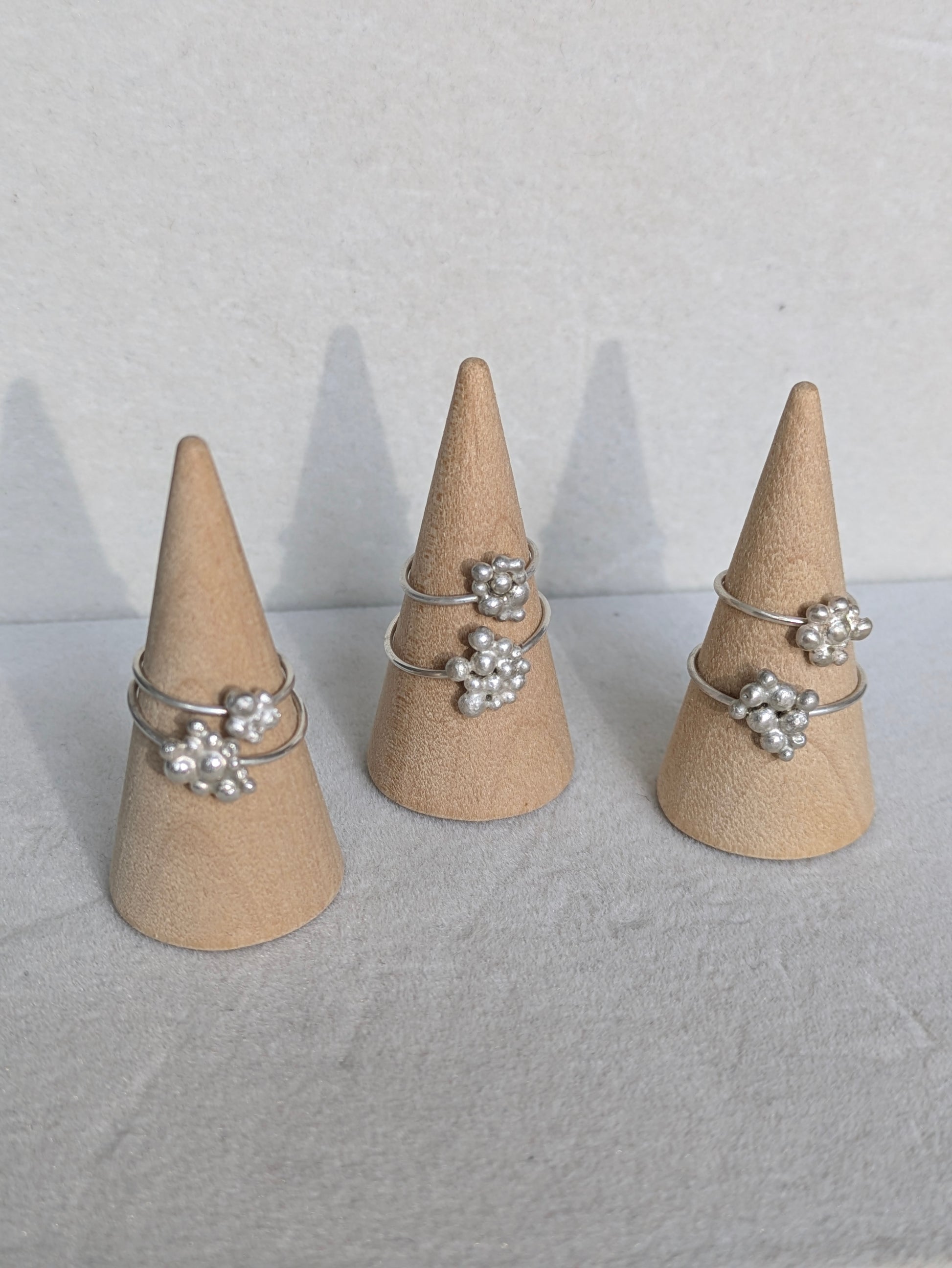 disse dejlige ringe vil aldrig være helt ens, da de alle er håndlavet og kuglerne bliver smeltet på mit værksted også.